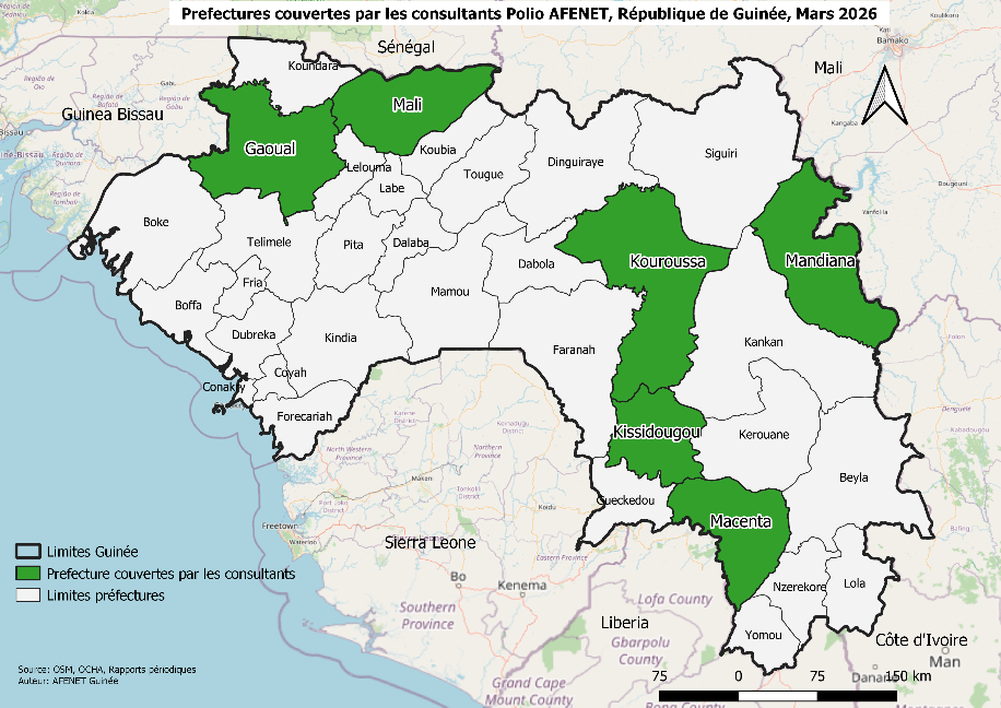 Afin de soutenir les efforts nationaux d’éradication de la poliomyélite, six gradués du Programme de Formation en Épidémiologie de Terrain (FETP) ont été déployés depuis le 18 janvier 2026 dans les districts sanitaires de Gaoual, Kissidougou, Kouroussa, Macenta, Mali et Mandiana en Guinée.