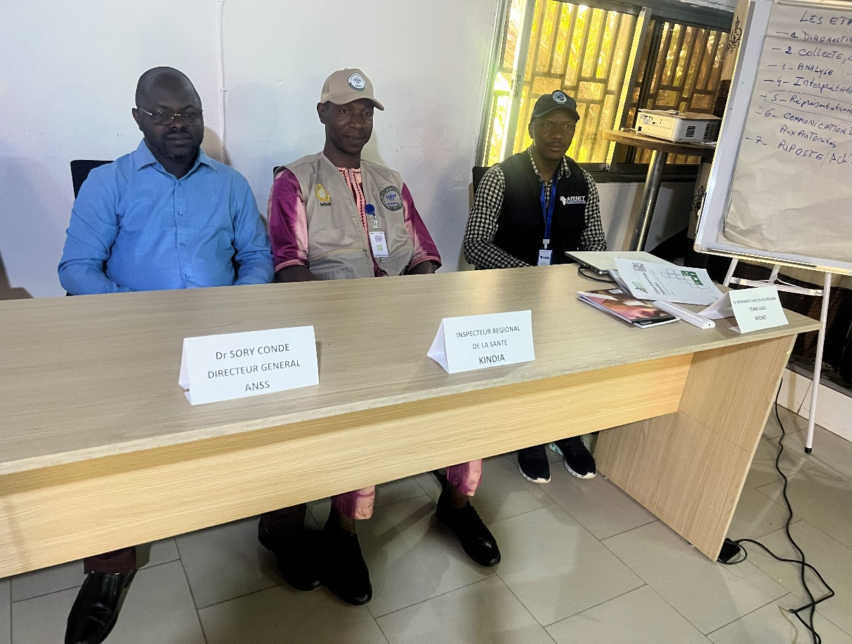 L’atelier a connu la présence du Directeur Général de l’ANSS, Directeur du Programme FETP (Dr Sory Condé) ainsi que de l’Inspecteur Régional de la Santé de Kindia (Dr Sékou Mohamed Camara), témoignant de l’engagement des autorités sanitaires en faveur du renforcement durable de la surveillance épidémiologique.
